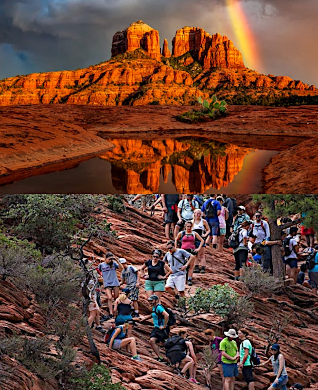 We’re completely disconnected from nature. Divorced from our Mother Earth. We’ve all become spacemen walking around with ear pods. We dwell in concrete jungles in fabricated hamster habitats. Glass, steel and cement have replaced dirt, trees and streams. Even when people “go to nature”, they drag a massive collection of equipment with them. They don’t hike, they go canyoneering. There’s lines of people on hiking trails, lines of cars to go to the mountains. You need a reservation to go to a national park. People tear up the land speeding around on ATVs.